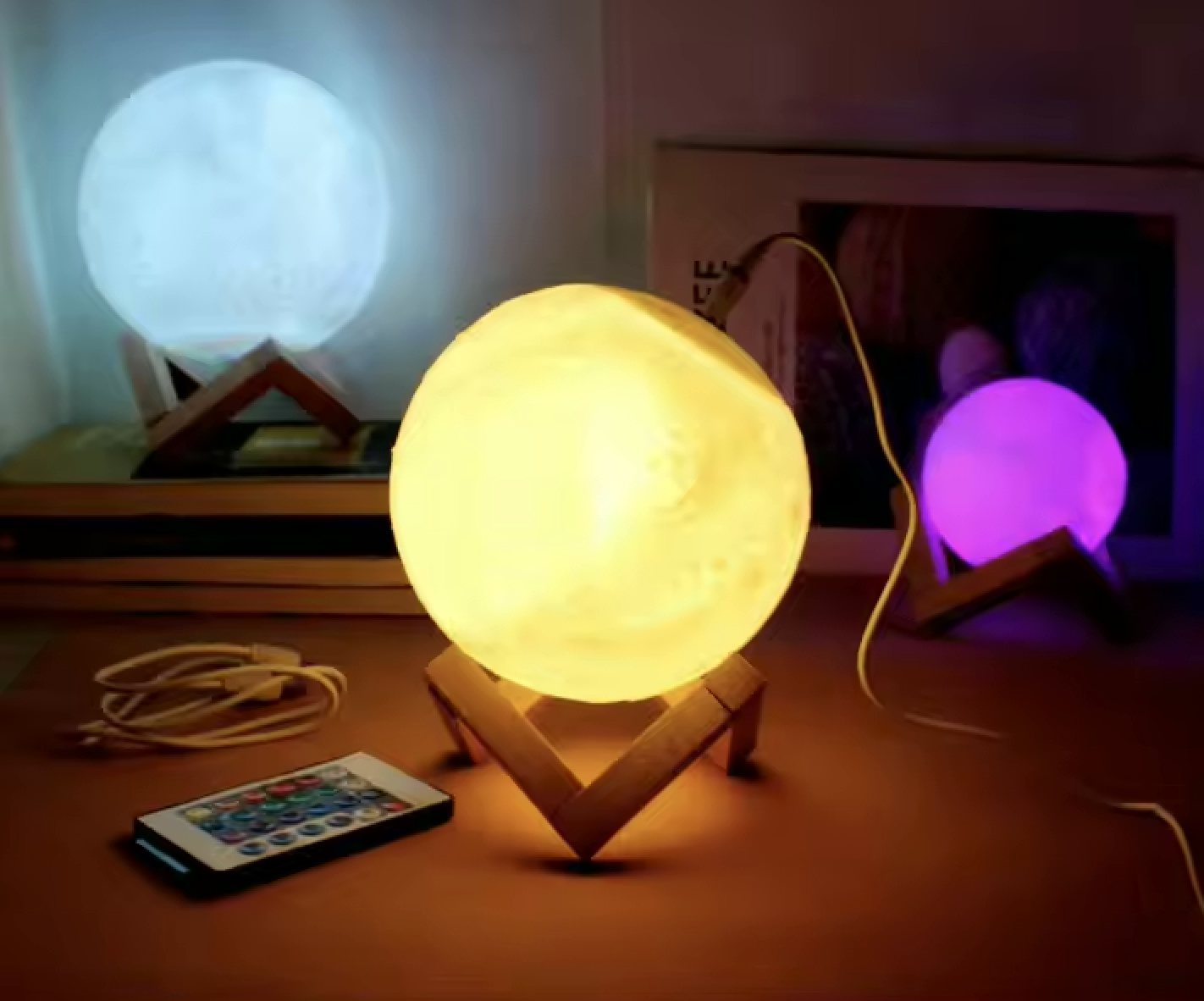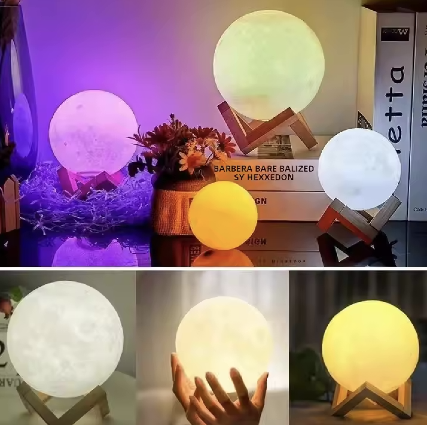 Lámpara de Luna Nocturna Recargable con Control Remoto y Táctil para Uso en el Dormitorio.